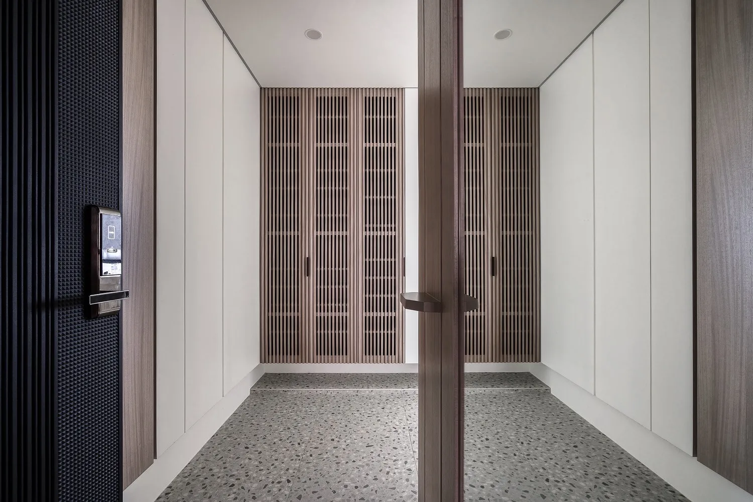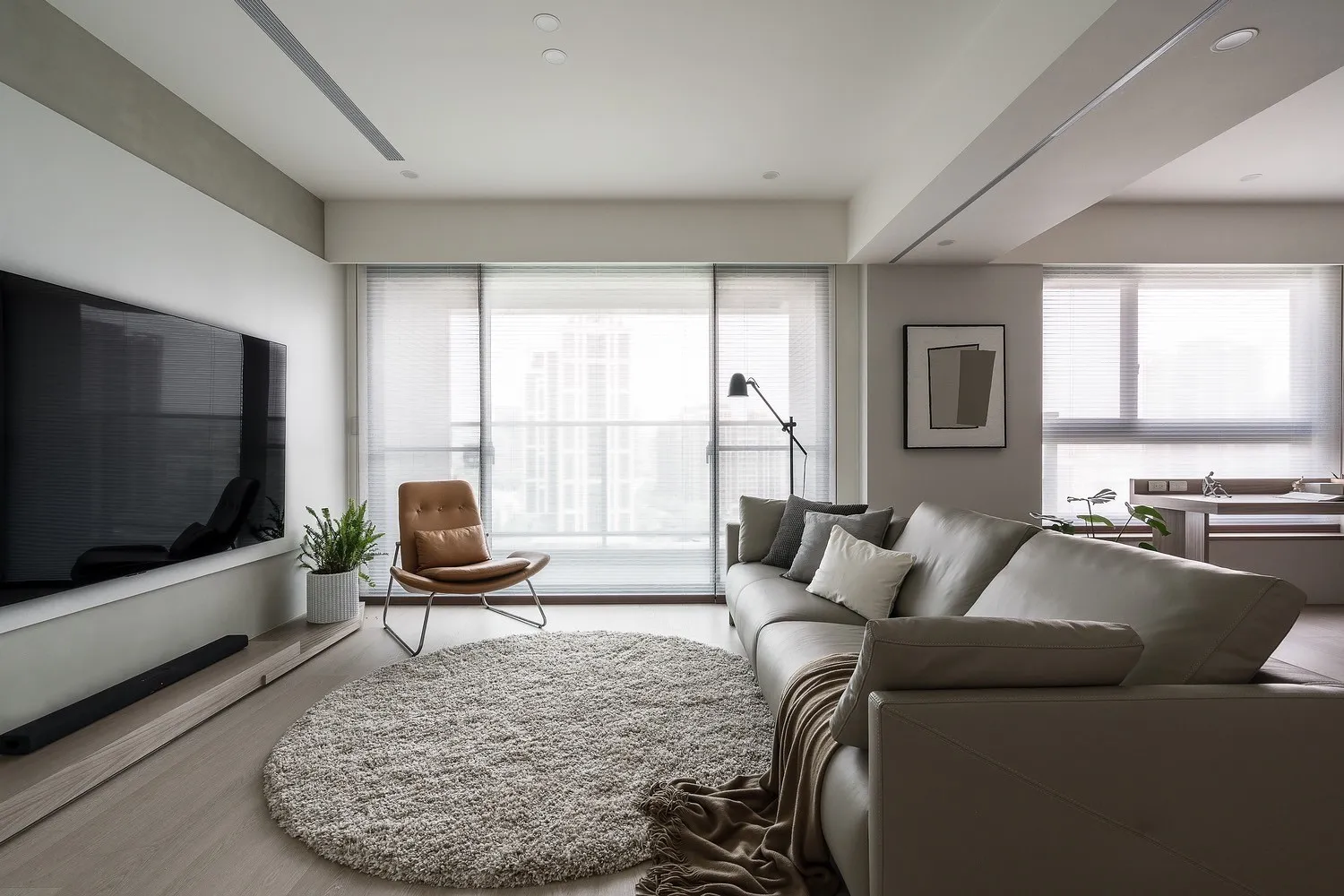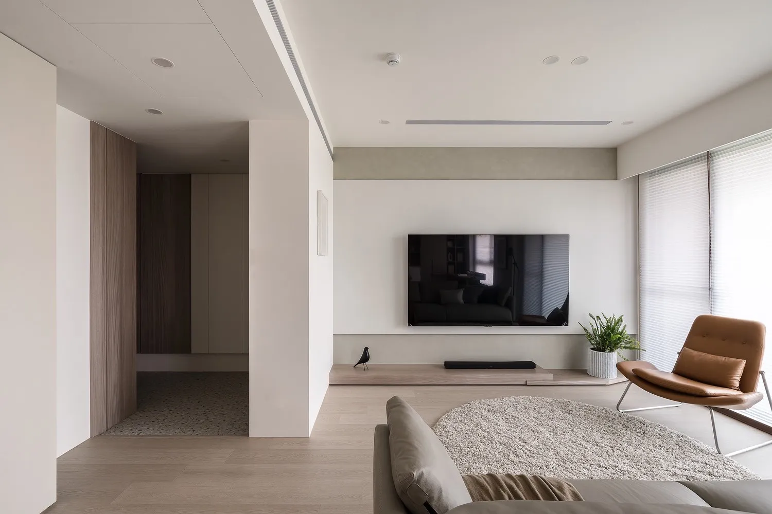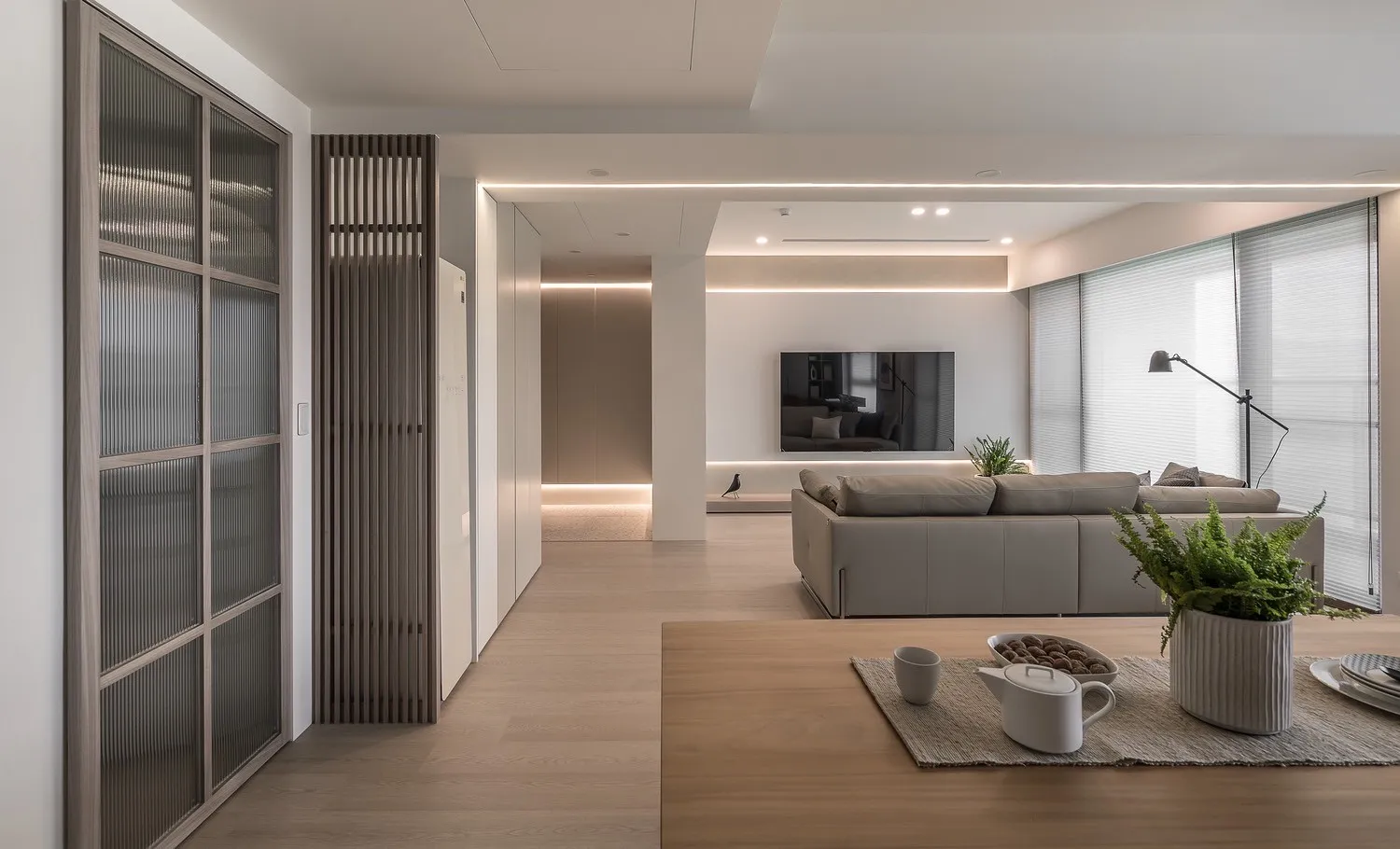 風格 | 現代簡約 坪數 | 37坪 格局 | 3房2廳2衛 類型 | 老屋翻新 使用建材 | 實木皮、實木格柵、烤漆、透心美耐板、特殊漆、長虹玻璃、蜂巢簾、烤漆鐵件