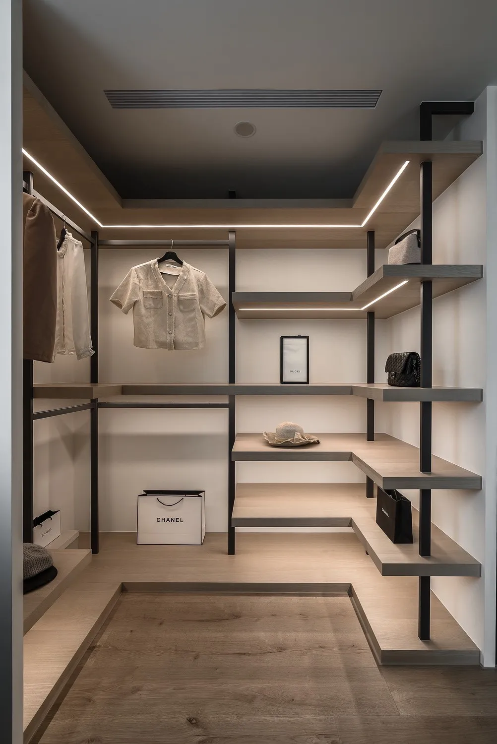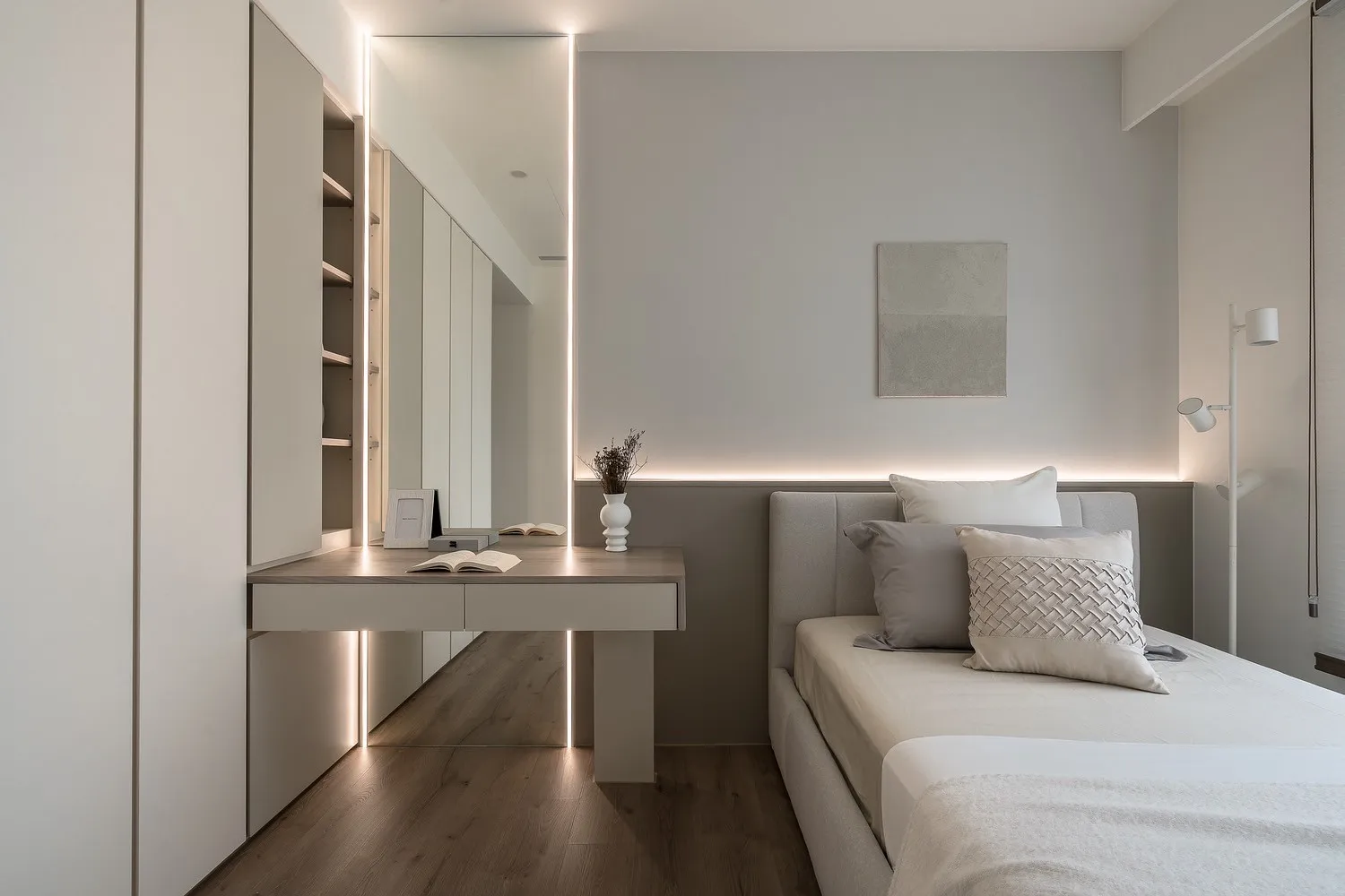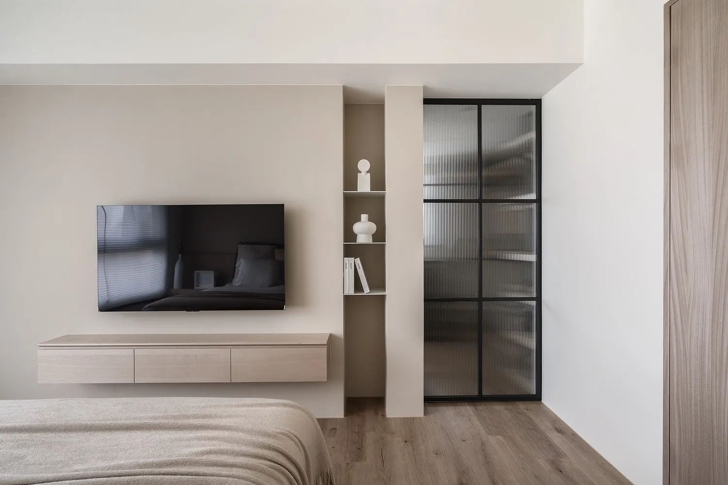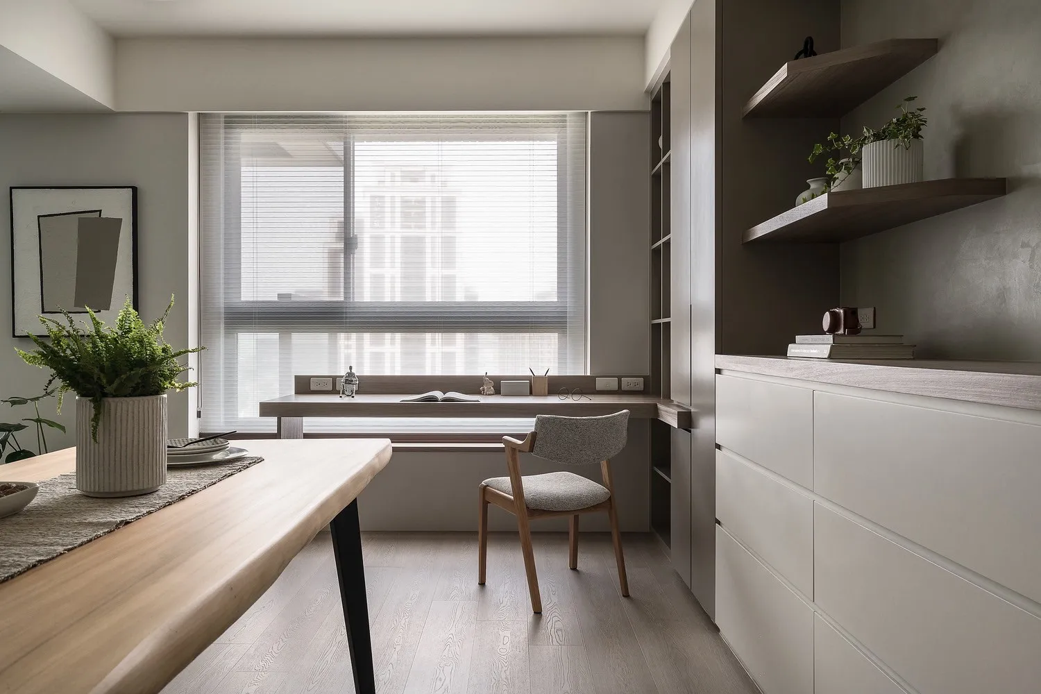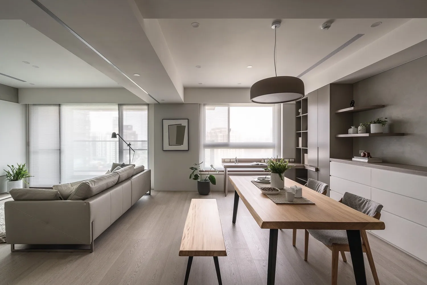 風格 | 現代簡約 坪數 | 37坪 格局 | 3房2廳2衛 類型 | 老屋翻新 使用建材 | 實木皮、實木格柵、烤漆、透心美耐板、特殊漆、長虹玻璃、蜂巢簾、烤漆鐵件