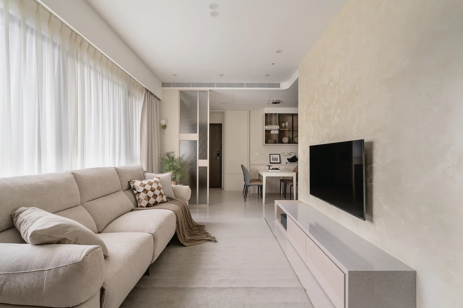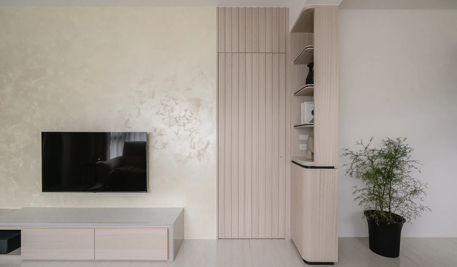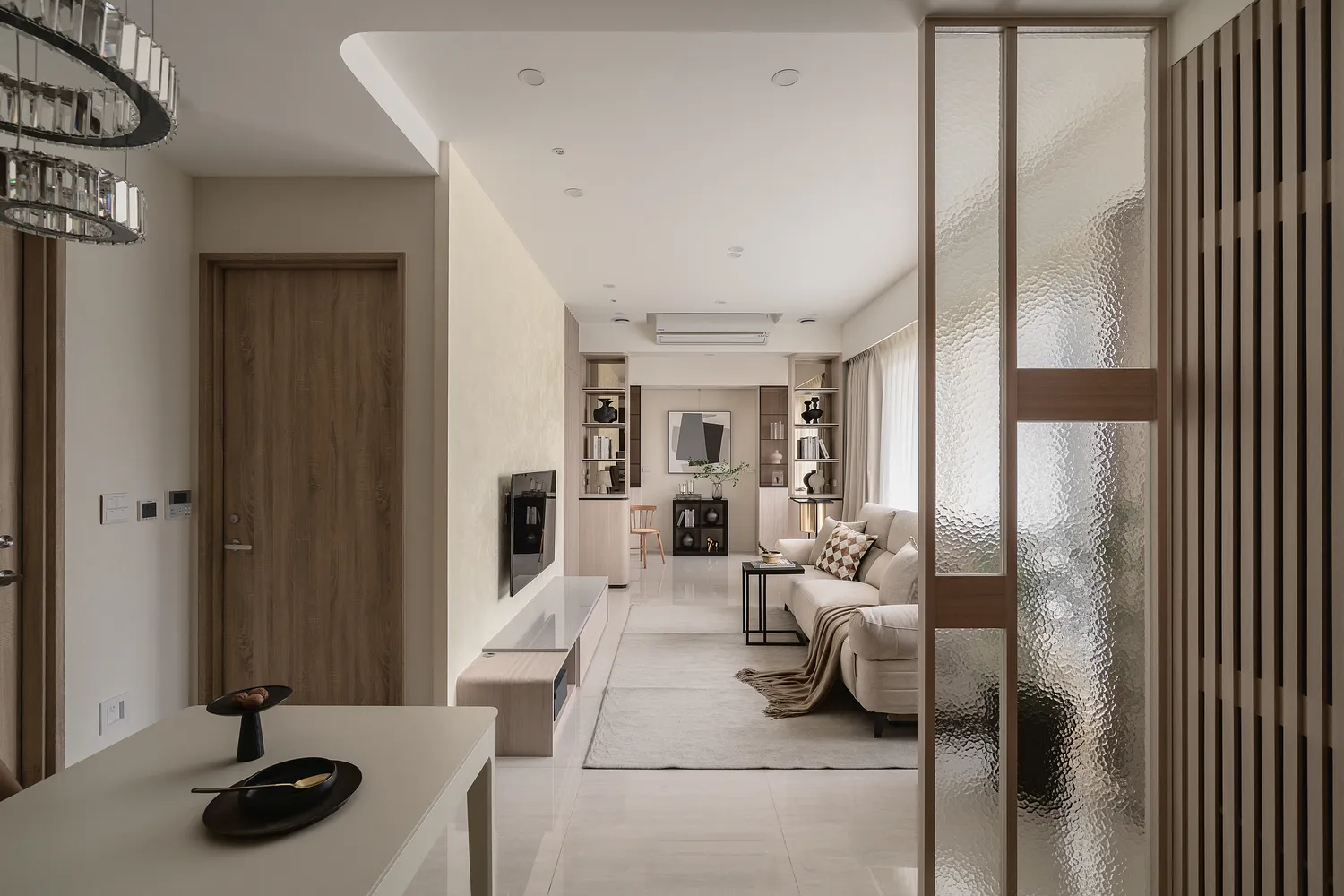 使用建材|天然木皮、義大利特殊塗料、灰鏡、水波紋玻璃、系統板材、鋁框門、LG人造石