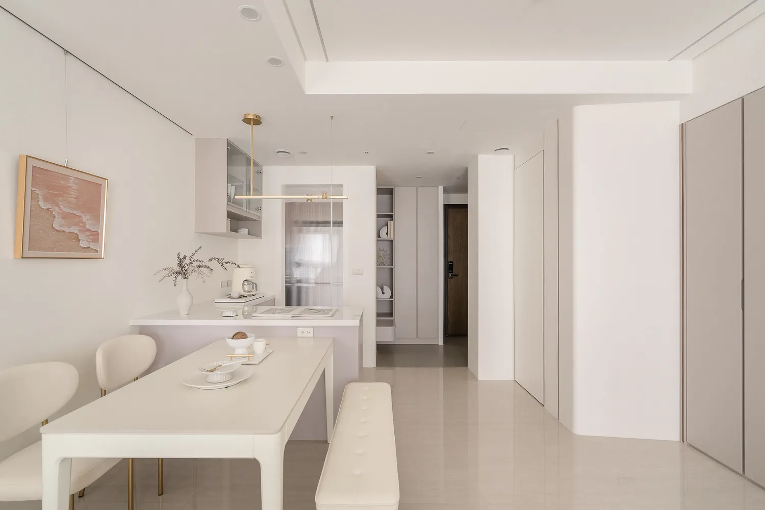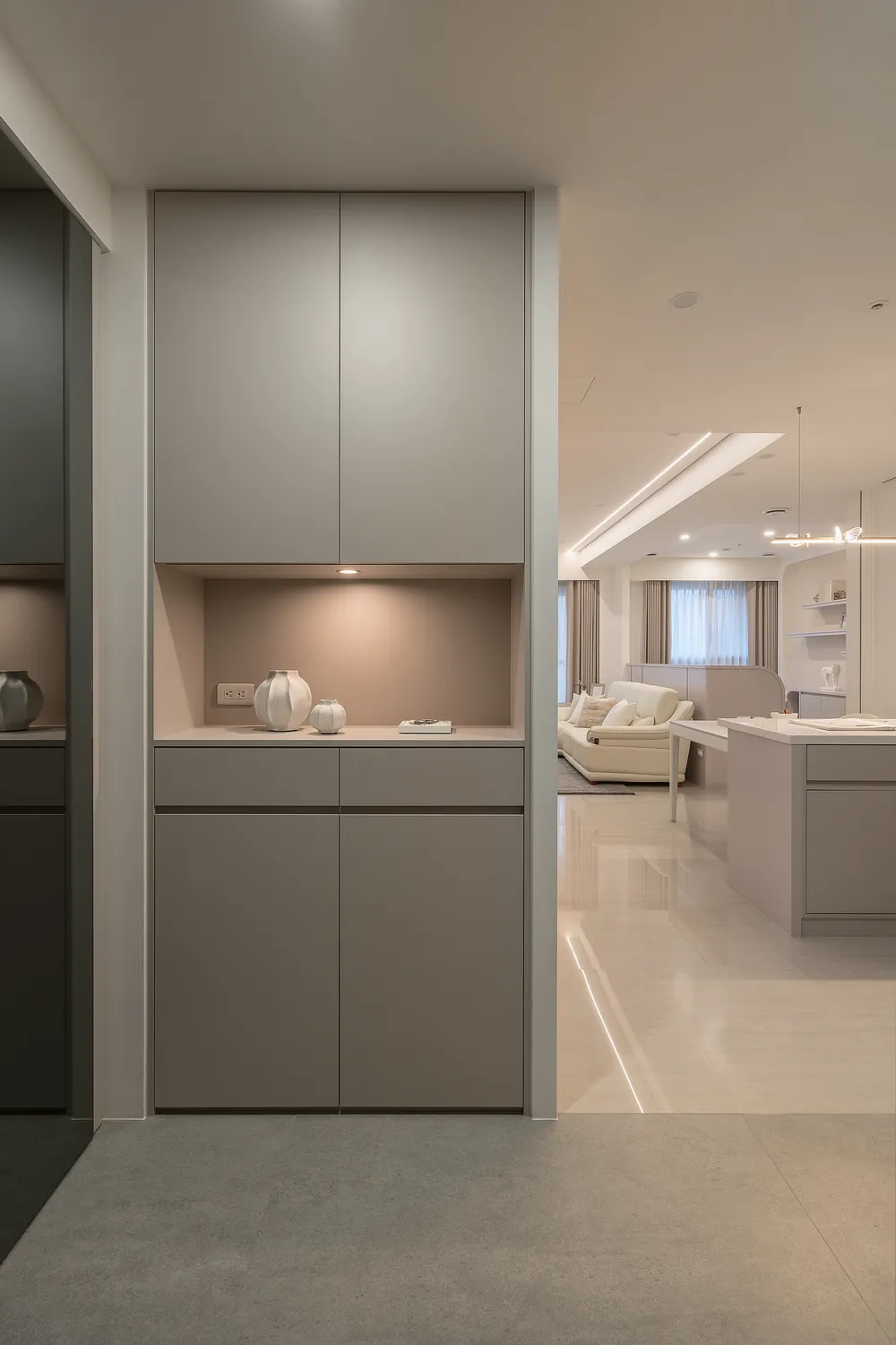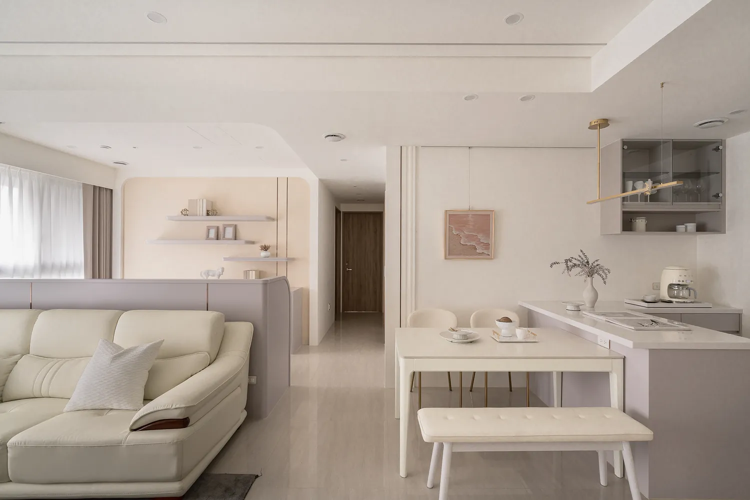 風格|現代輕奢 坪數|35坪 格局|3房2廳2衛 類型|新成屋 使用建材| 國產磁磚/鍍鈦鐵件/鍍鈦金屬條/烤漆/烤漆塗料/義大利特殊塗料/灰玻璃/灰鏡/長虹玻璃/LG人造石/系統板材